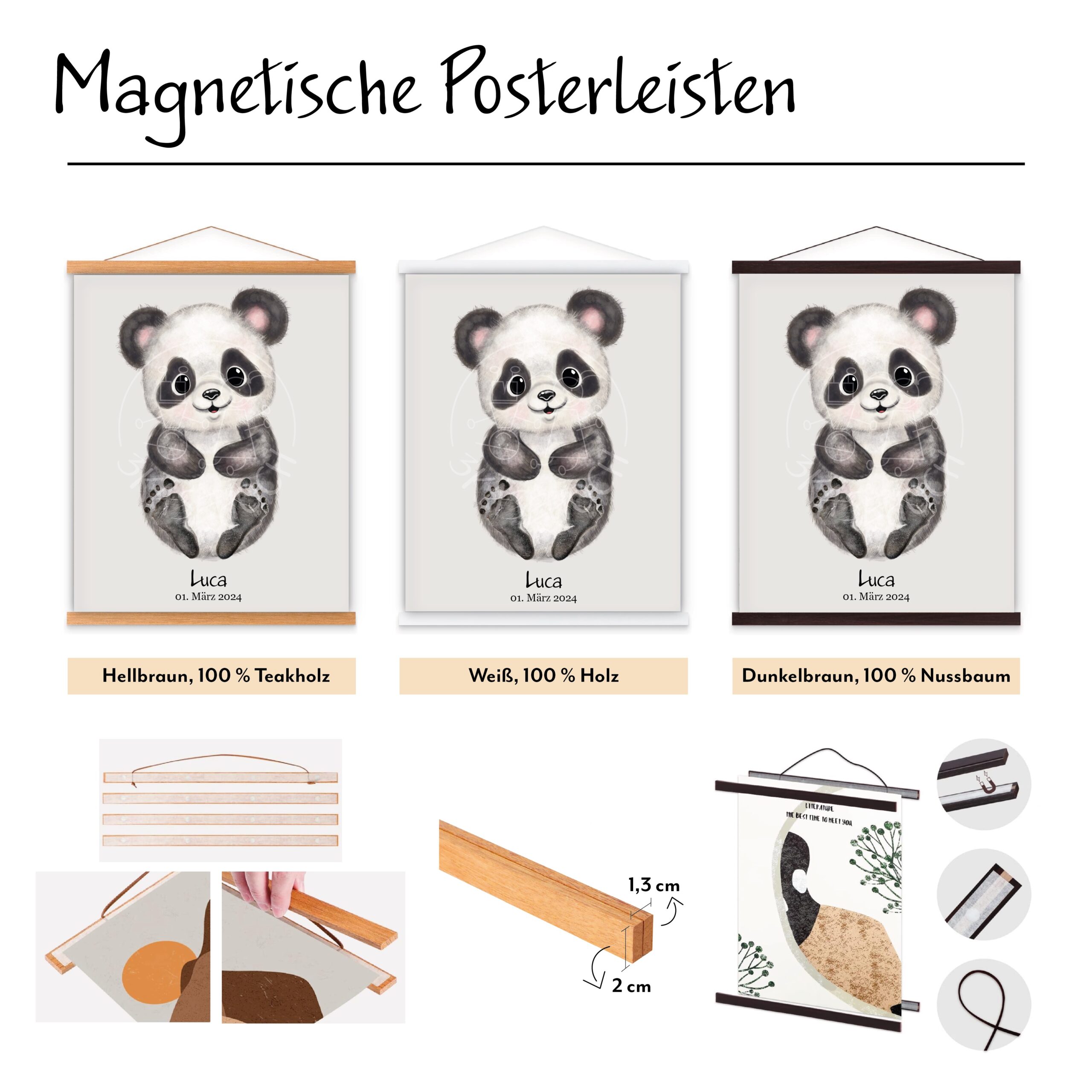 - 1 x magnetische Posterleiste aus 100 % Holz in beige, dunkelbraun oder weiß