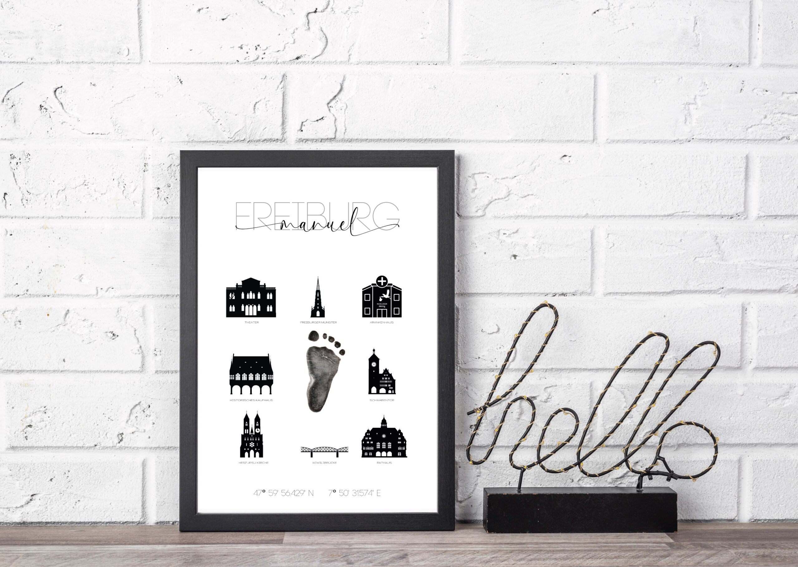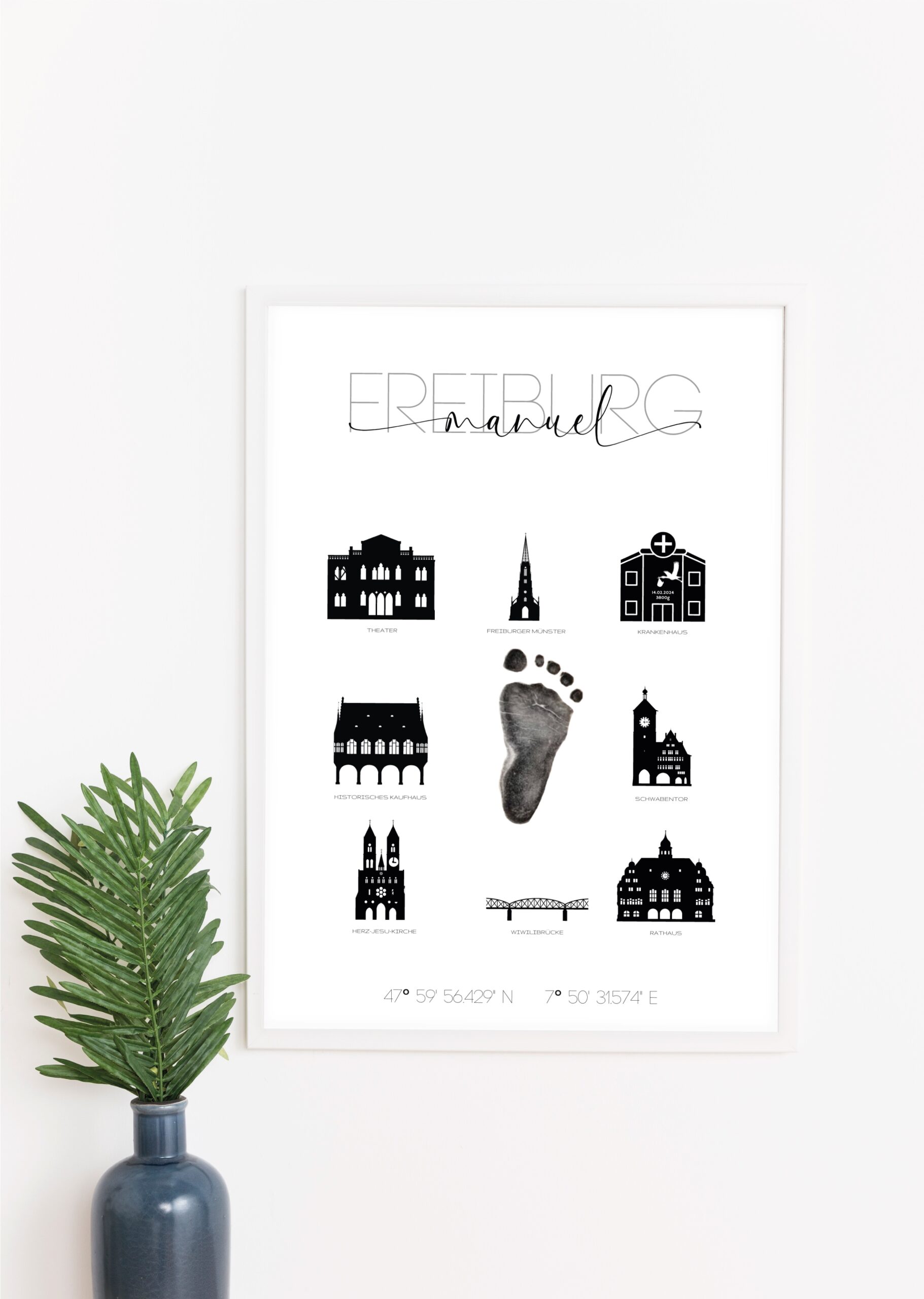 Personalisierbares Stadt-Geburtsposter mit Fußabdruck – Einzigartige Erinnerung an den Geburtsort Deines Babys!