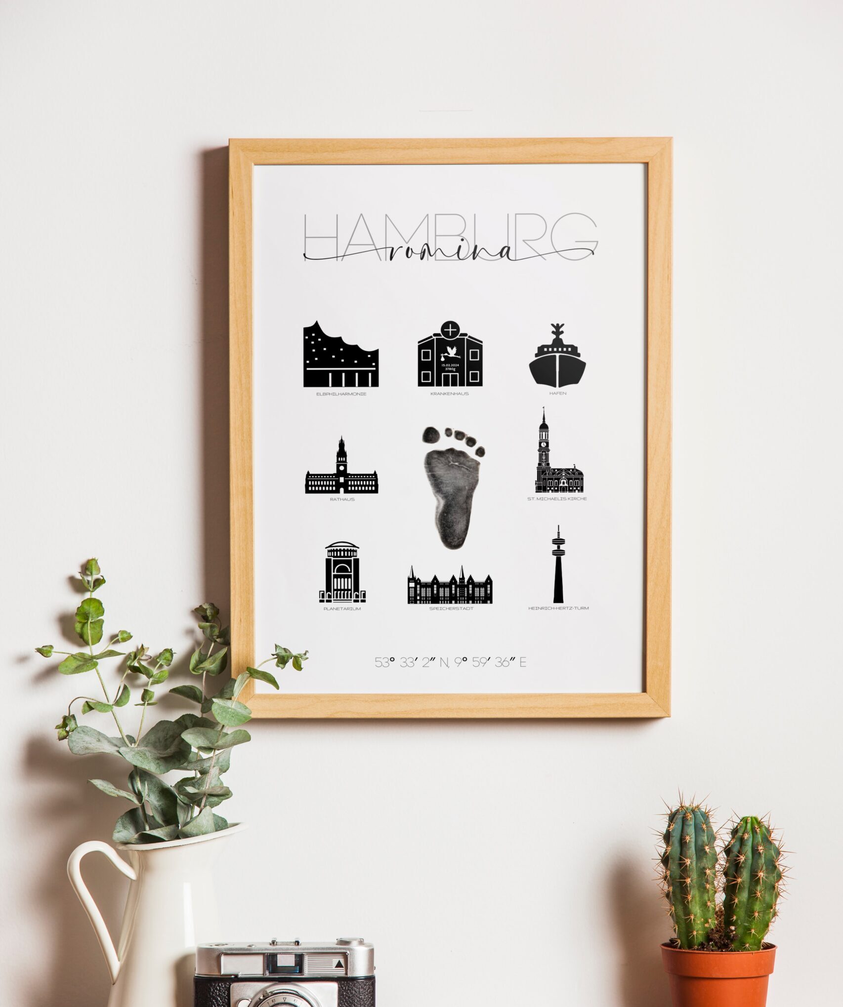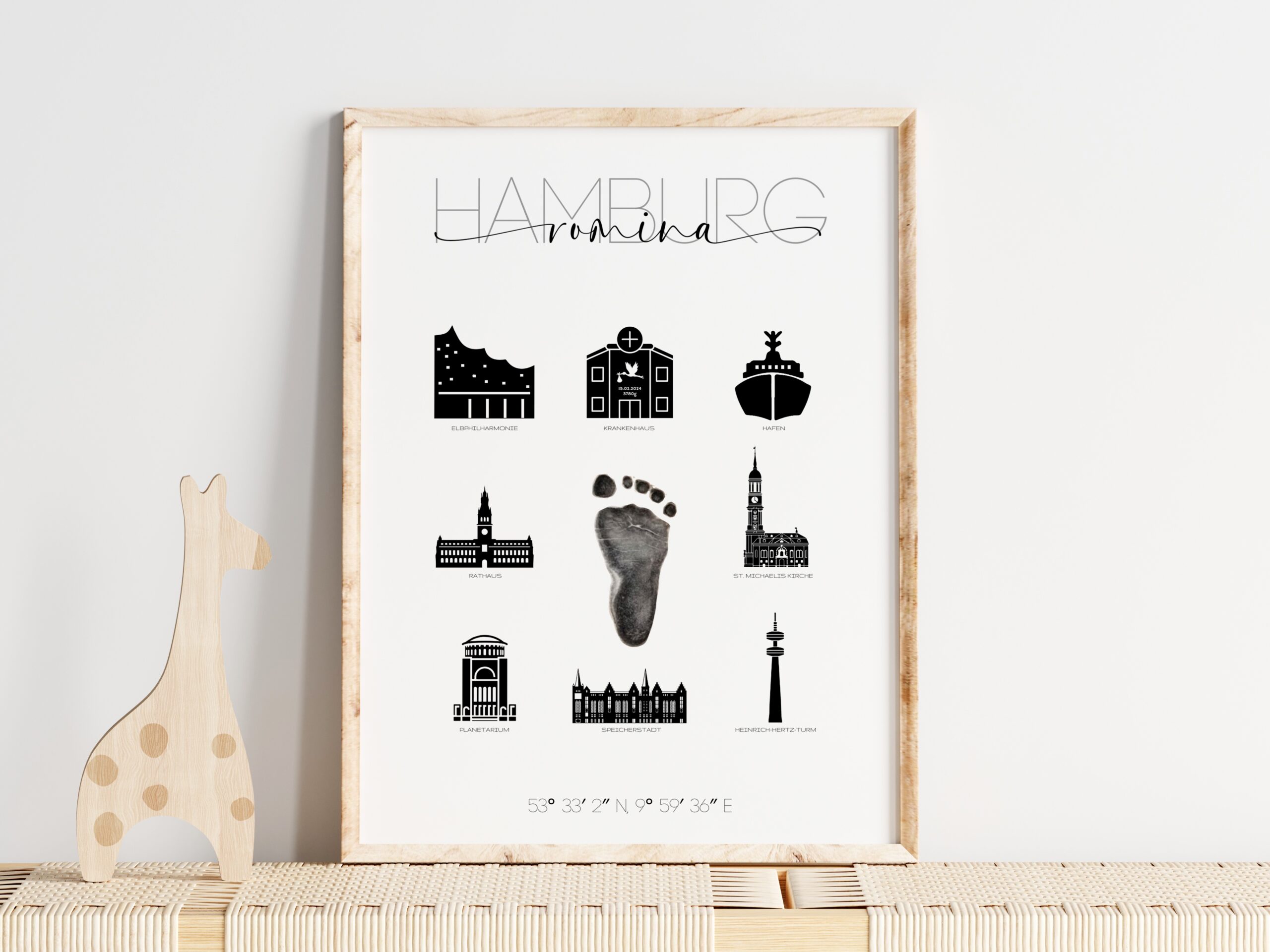 Personalisierbares Stadt-Geburtsposter mit Fußabdruck – Einzigartige Erinnerung an den Geburtsort Deines Babys!