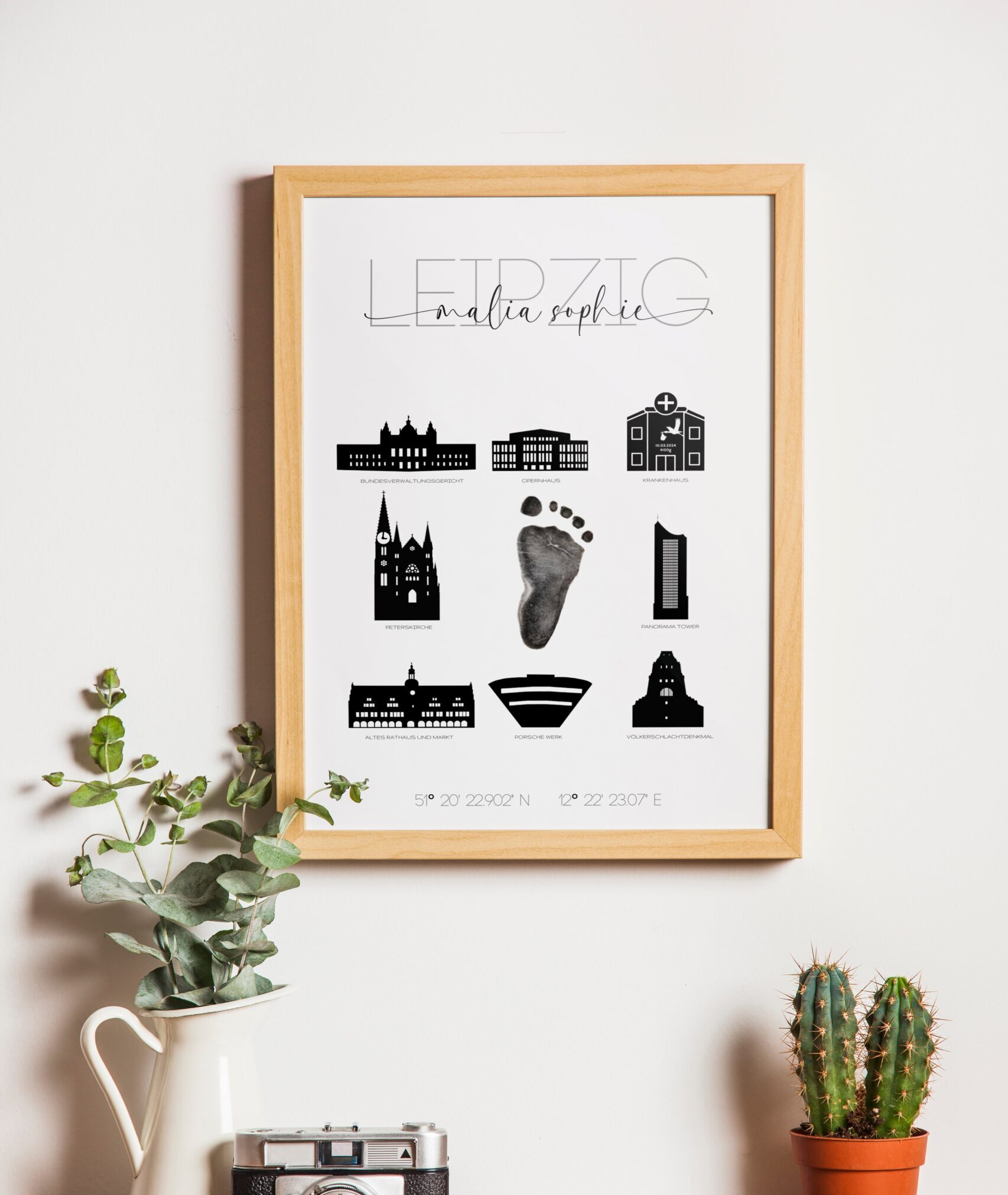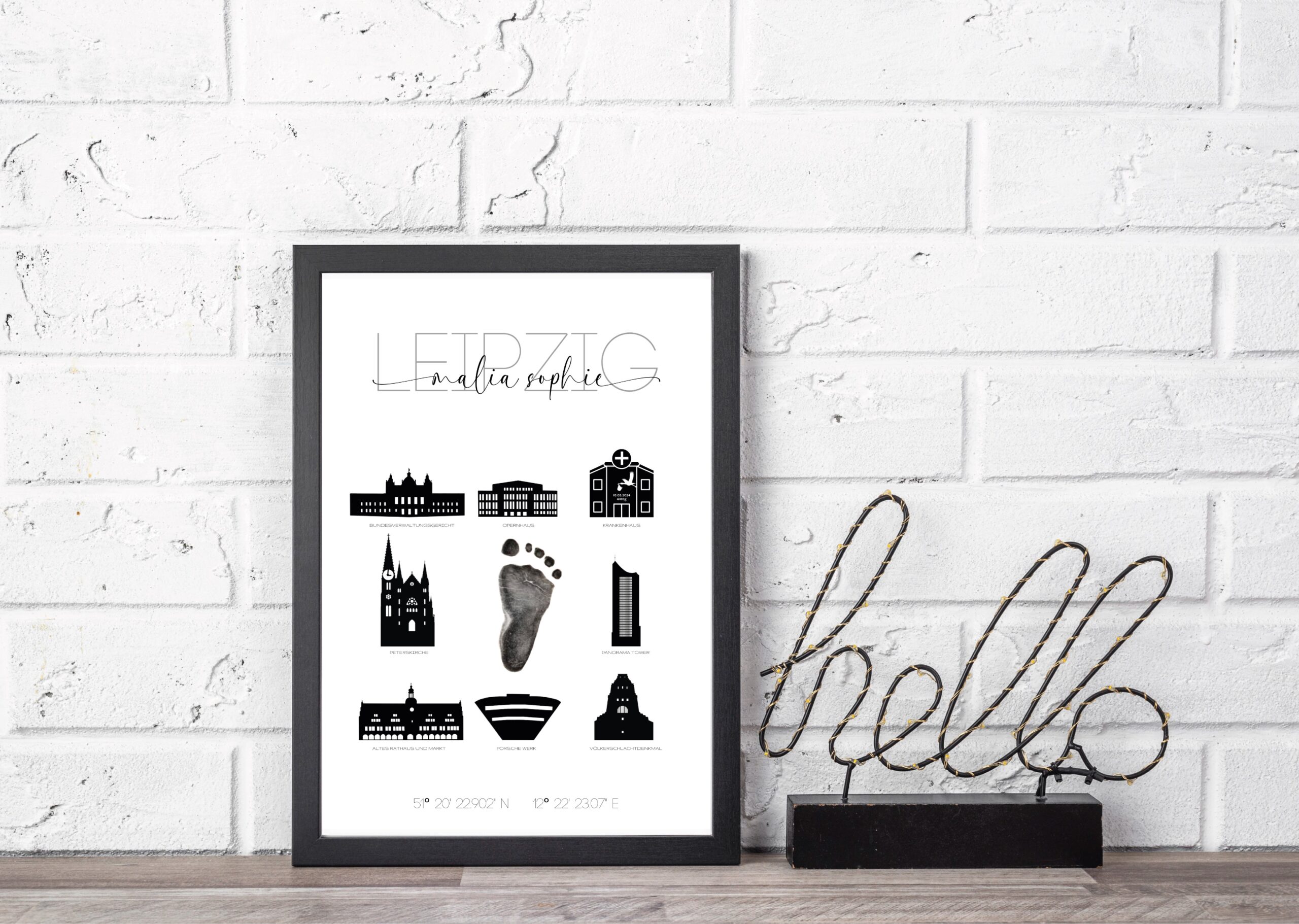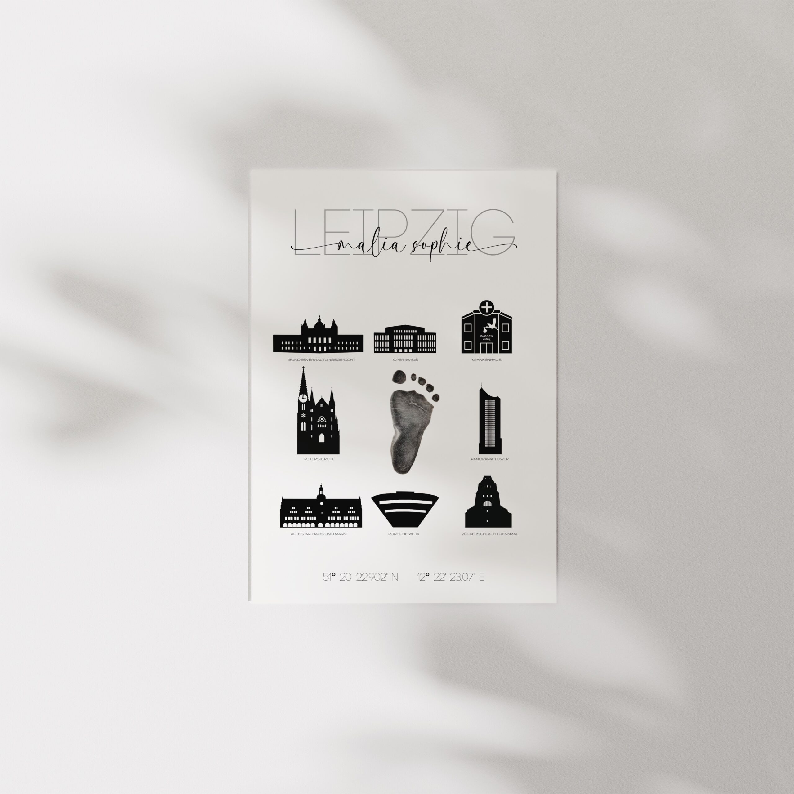 Personalisierbares Stadt-Geburtsposter mit Fußabdruck – Einzigartige Erinnerung an den Geburtsort Deines Babys!