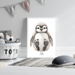 | Motiv Fußabdruck Poster | Alpaka, Bär, Biene, Eule, Fuchs, Hase, Igel, Koala, Löwe, Mäuschen, Otter, Panda, Pinguin |
