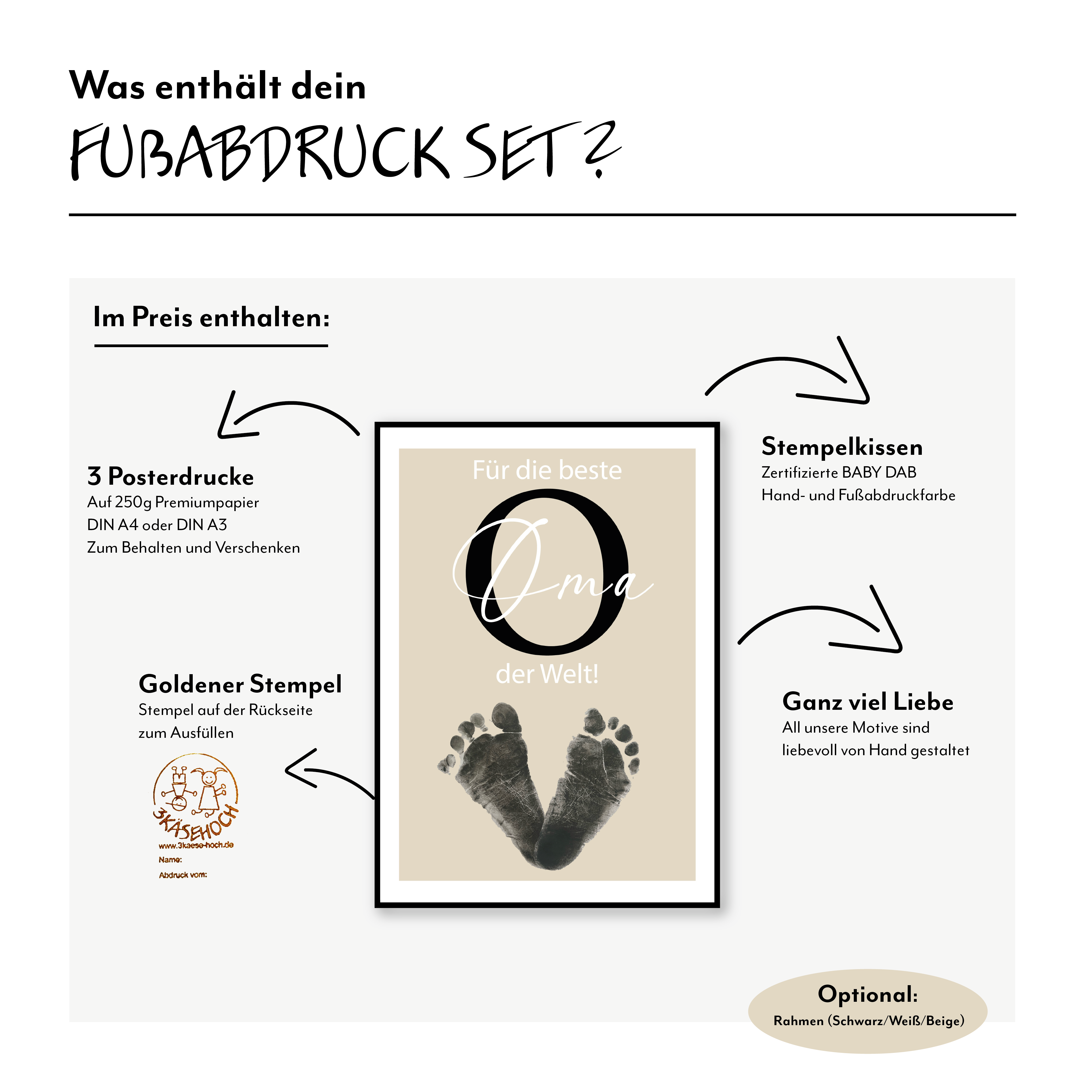 Verschenke ganz viel Liebe mit unseren einzigartigen Fußabdruck Sets „Bester Papa der Welt“, „Beste Mama der Welt“, „Beste Oma der Welt“, „Bester Opa der Welt“, „Beste Tante der Welt“ und „Bester Onkel der Welt“. Diese Poster sind nicht nur eine wunderschöne Dekoration, sondern auch eine liebevolle Hommage an die wichtigsten Menschen in deinem Leben.