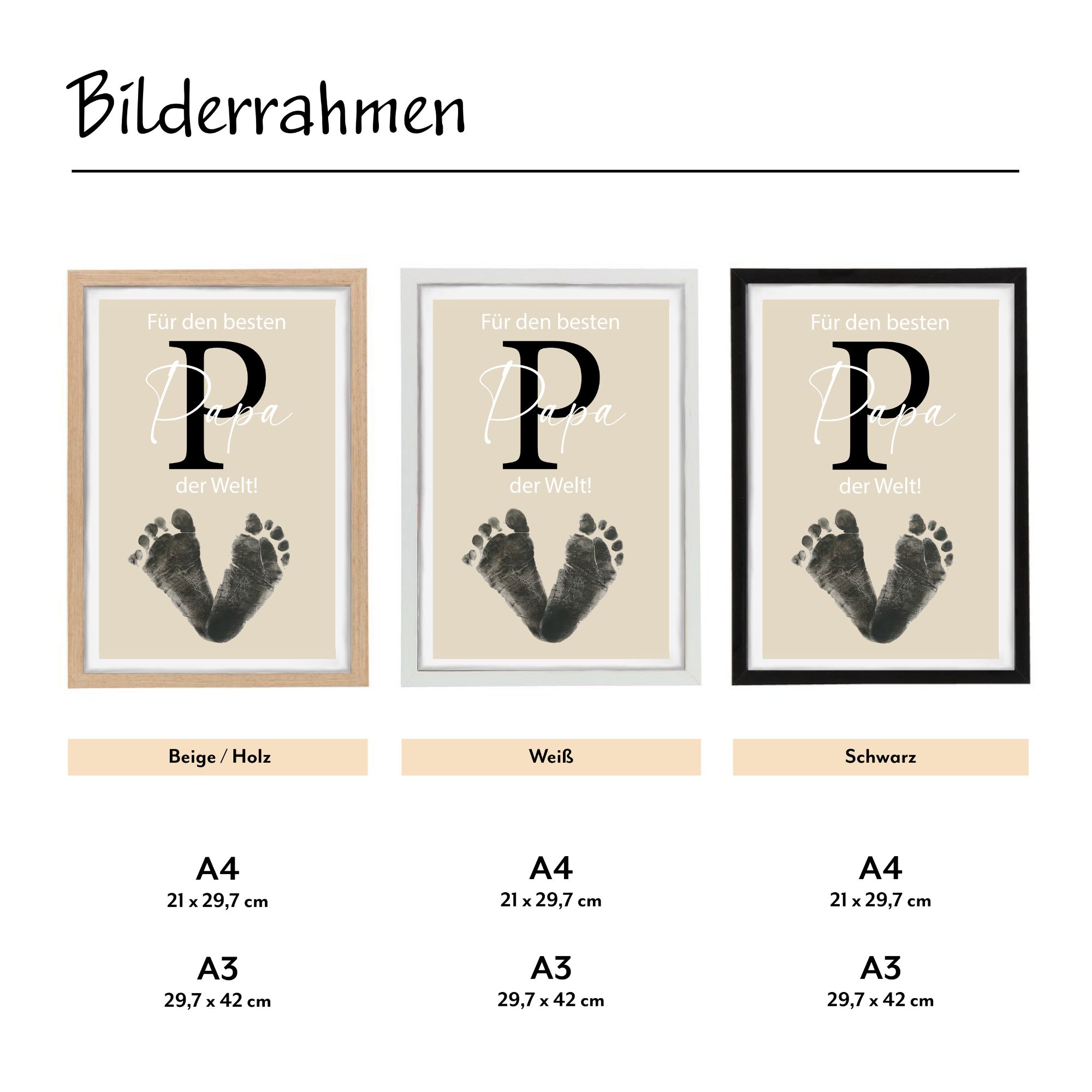 Verschenke etwas total Einzigartiges und Wertvolles. Jedes Fußabdruck-Poster trägt herzliche Botschaften wie „Bester Papa der Welt“ und „Beste Mama der Welt“. Ideal als liebevolles und originelles Geschenk für Eltern, Großeltern, Tanten und Onkel. Schaffe unvergessliche Erinnerungen und zeige deinen Lieben, wie viel sie dir bedeuten!