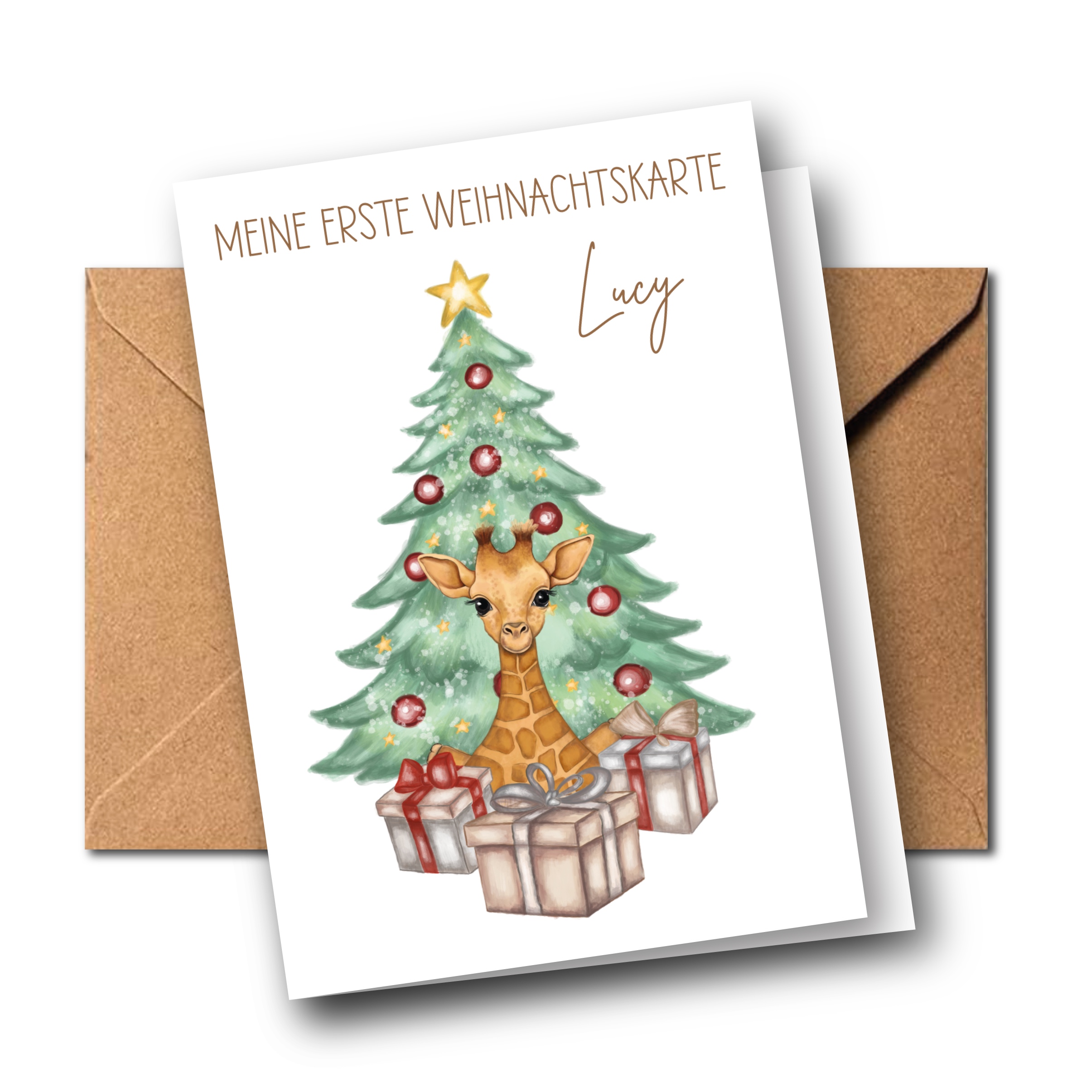 Schenke deinem Baby eine ganz besondere Erinnung mit unserer personalisierten Weihnachtsgrußkarte mit niedlichem Tiermotiv und der Aufschrift