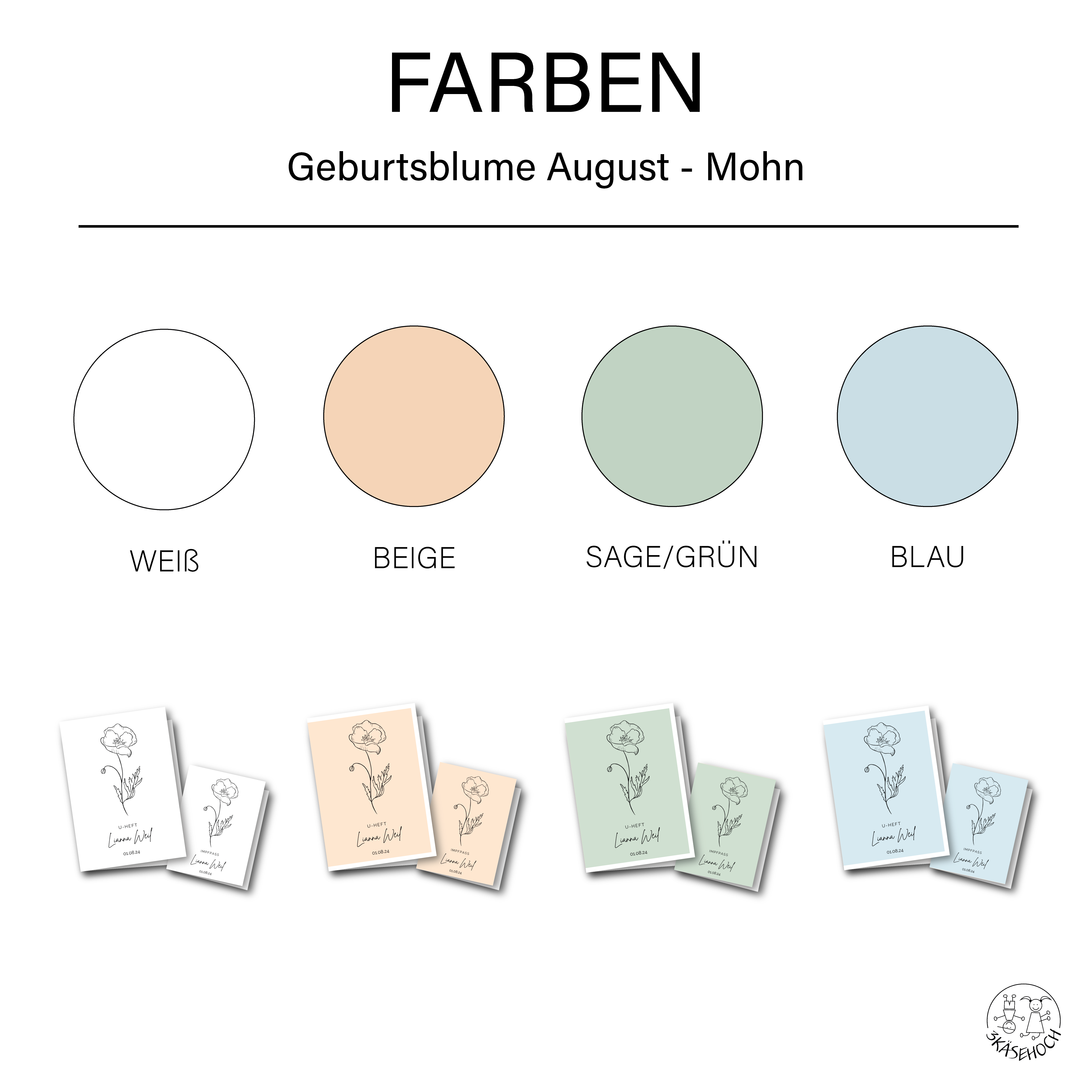 • Farbauswahl: Entscheide dich für eine der eleganten Hintergrundfarben: Weiß, Beige, Sage Grün oder Blau.