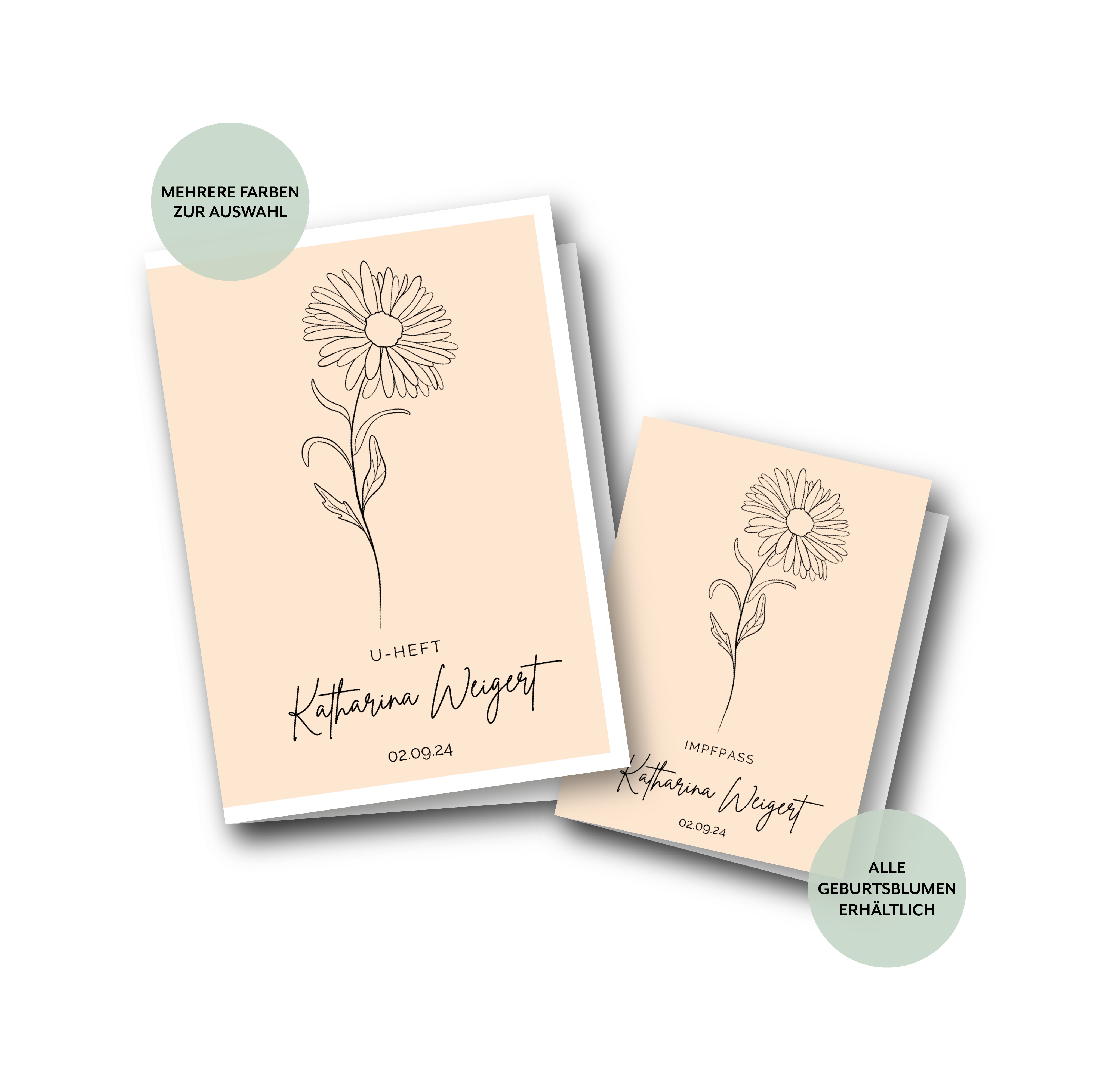 U-Heft/Impfpass Hülle Geburtsblume personalisert - September Aster