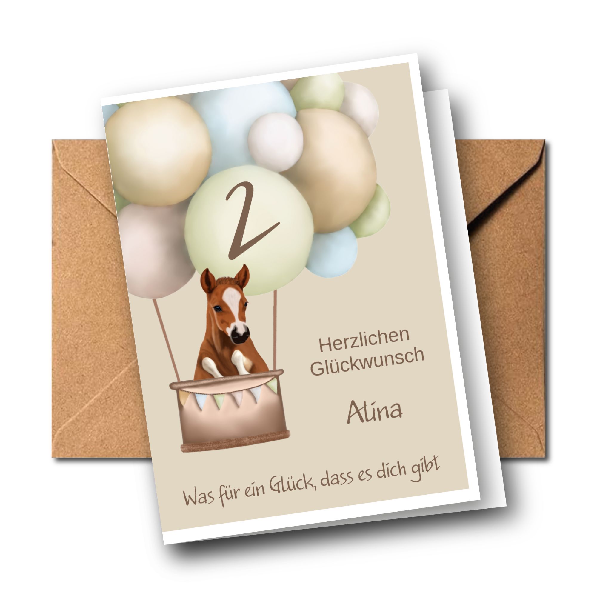 Geburtstagskarte Kind personalisiert mit Name, Alter und Spruch - Pferd