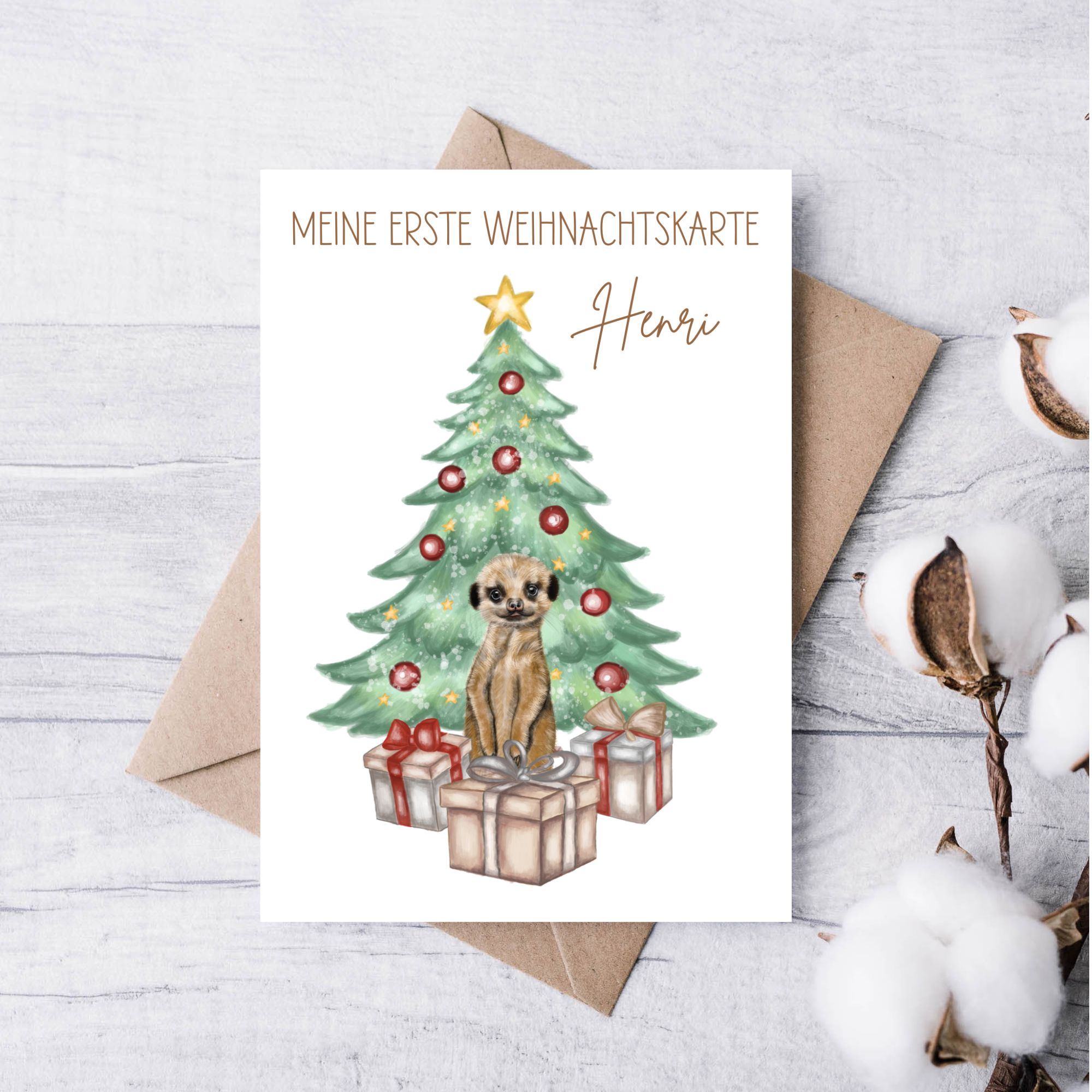 Meine Erste Weihnachtskarte – personalisierbar für Babys - Erdmännchen