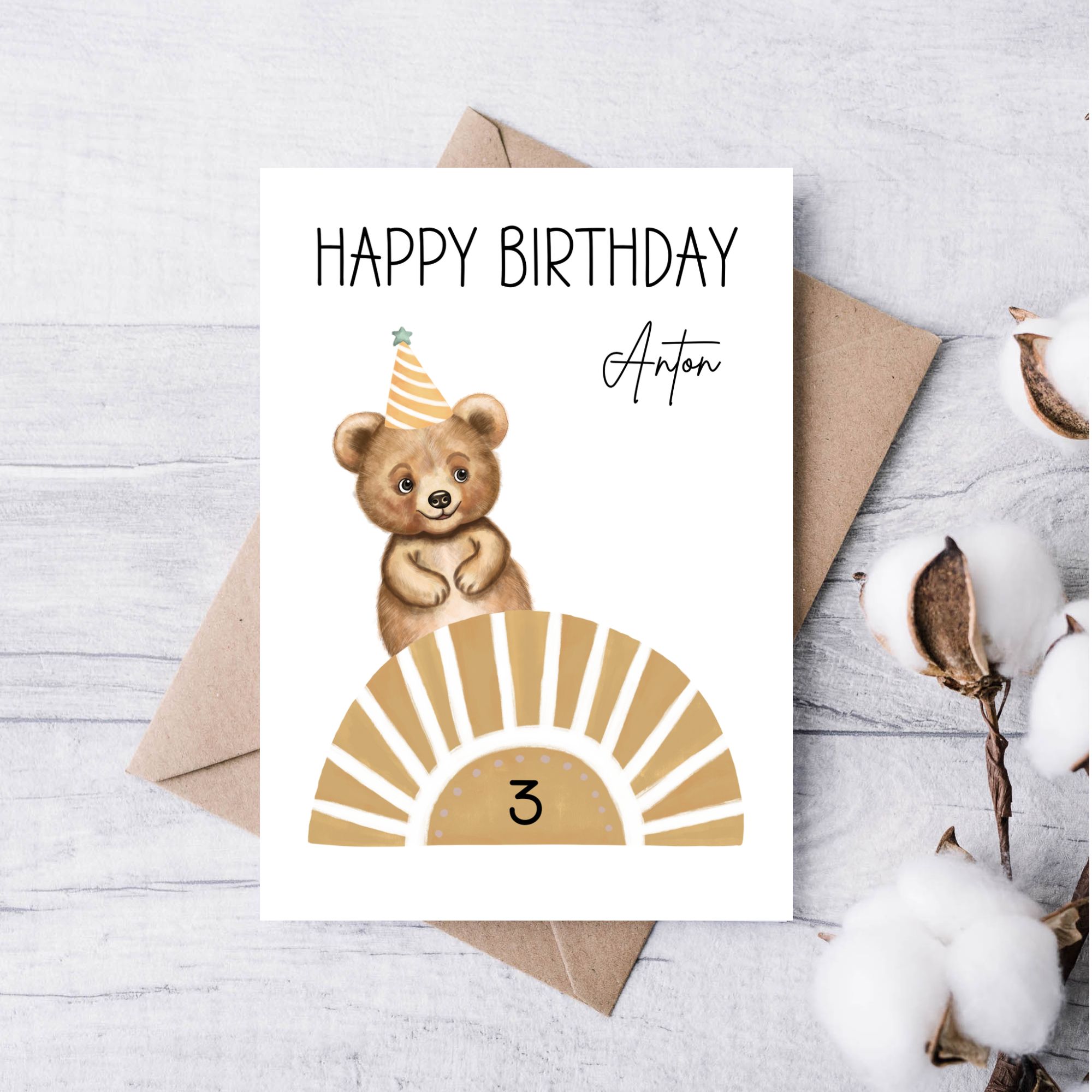 Geburtstagskarte Kind Sonne – personalisiert mit Name & Alter - Bär