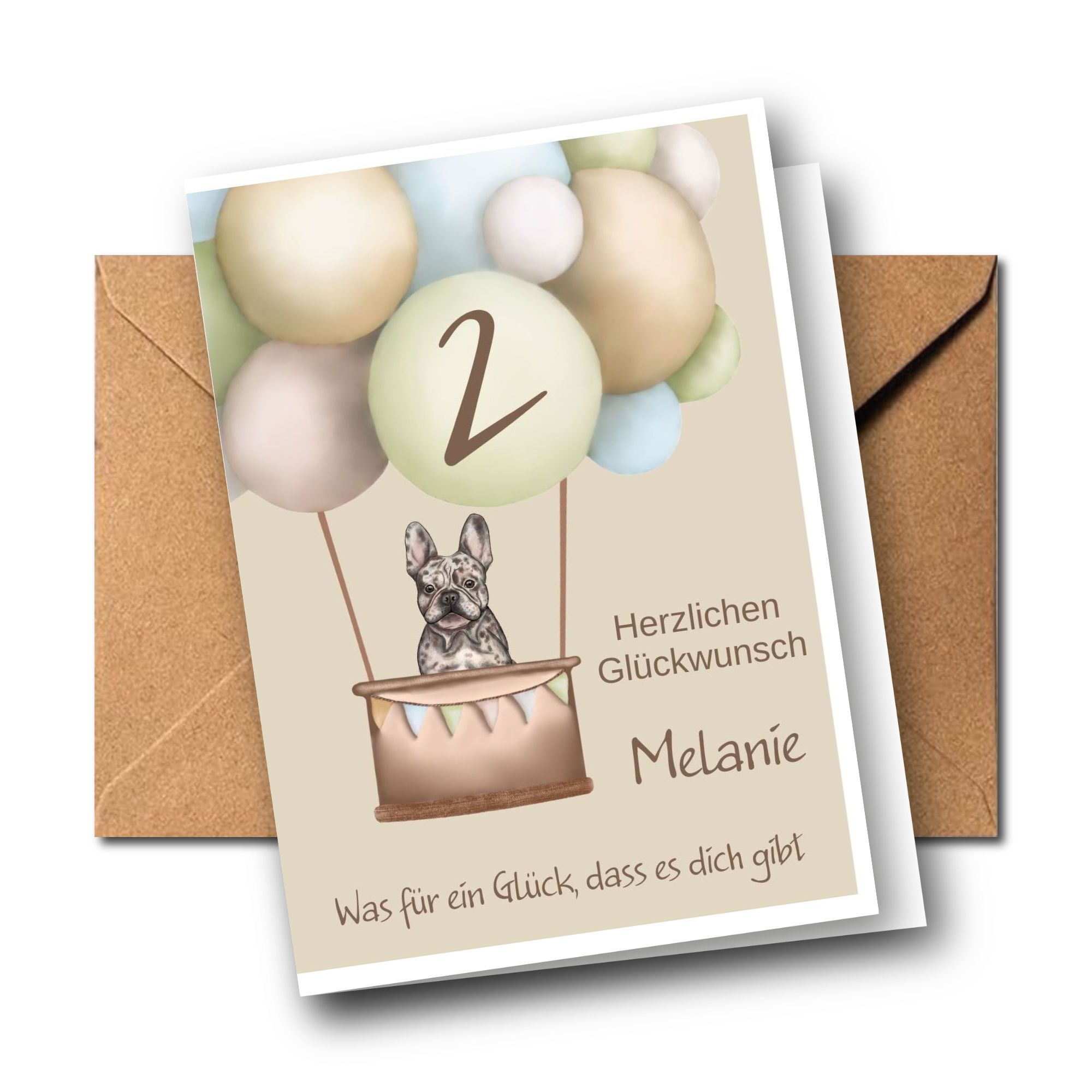 Geburtstagskarte Kind personalisiert mit Name, Alter und Spruch - Bulldogge