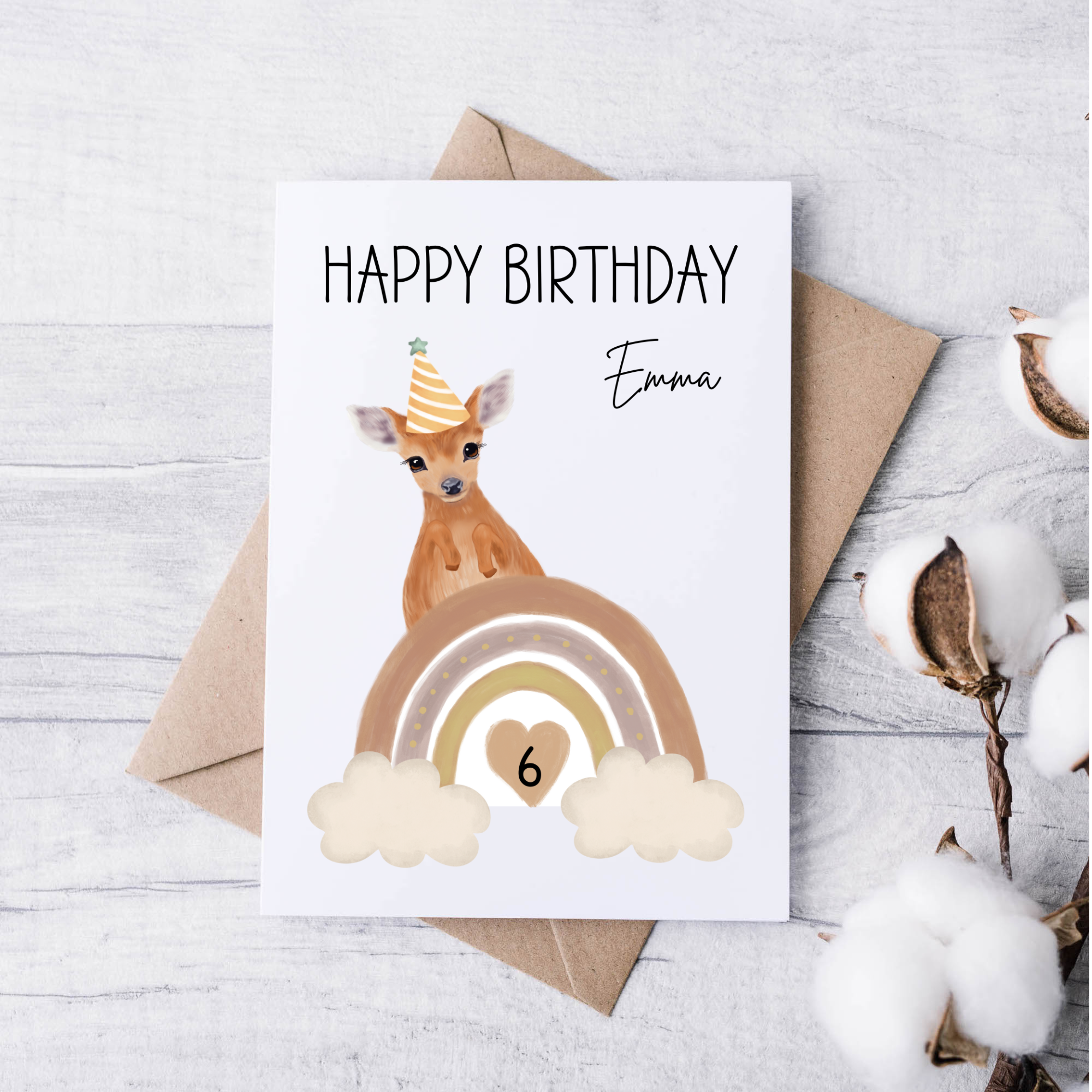 Geburtstagskarte Kind Regenbogen – personalisiert mit Name & Alter - Reh