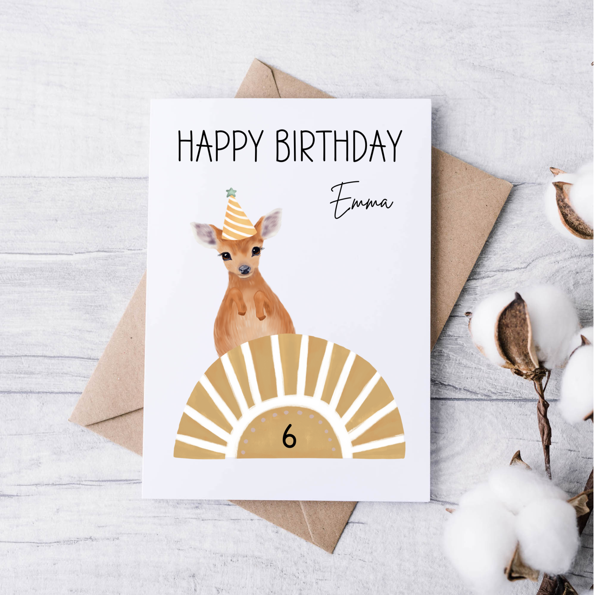 Geburtstagskarte Kind Sonne – personalisiert mit Name & Alter - Reh