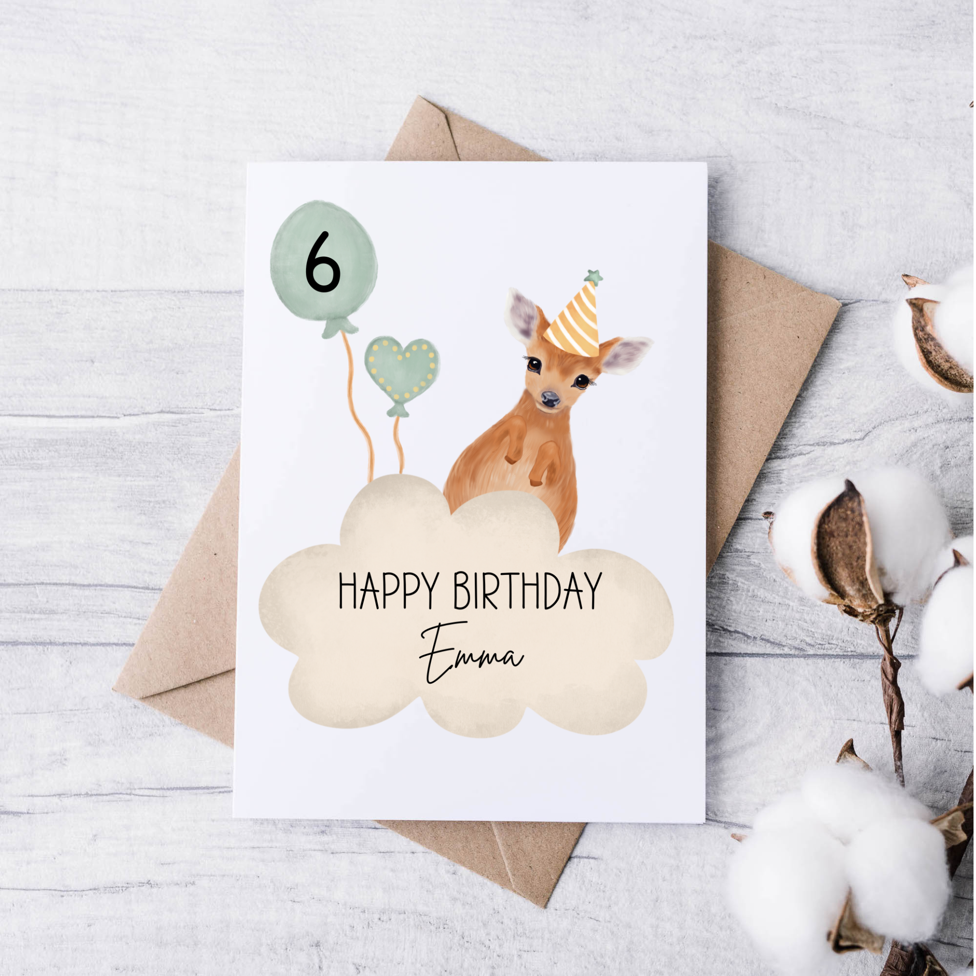 Geburtstagskarte Kind Wolke – personalisiert mit Name & Alter - Reh