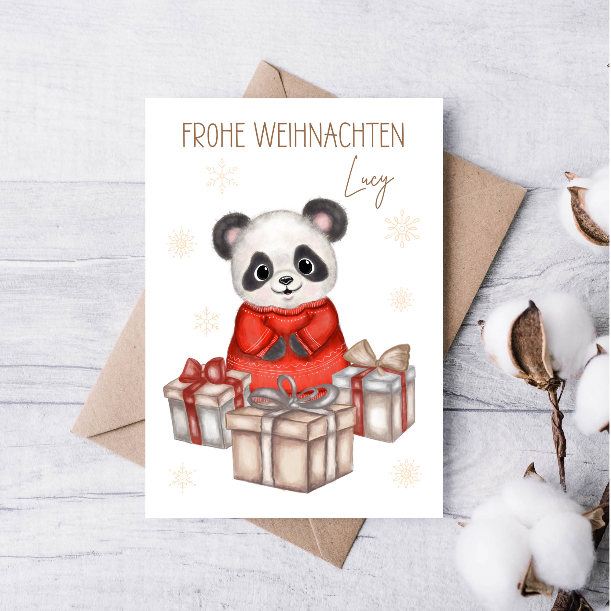 Weihnachtskarte für Kinder – „Frohe Weihnachten“ personalisiert - Panda