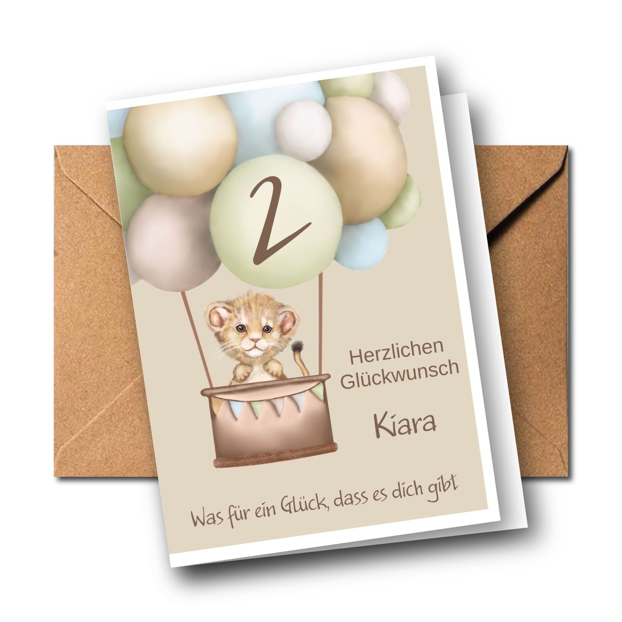 Geburtstagskarte Kind personalisiert mit Name, Alter und Spruch - Löwe