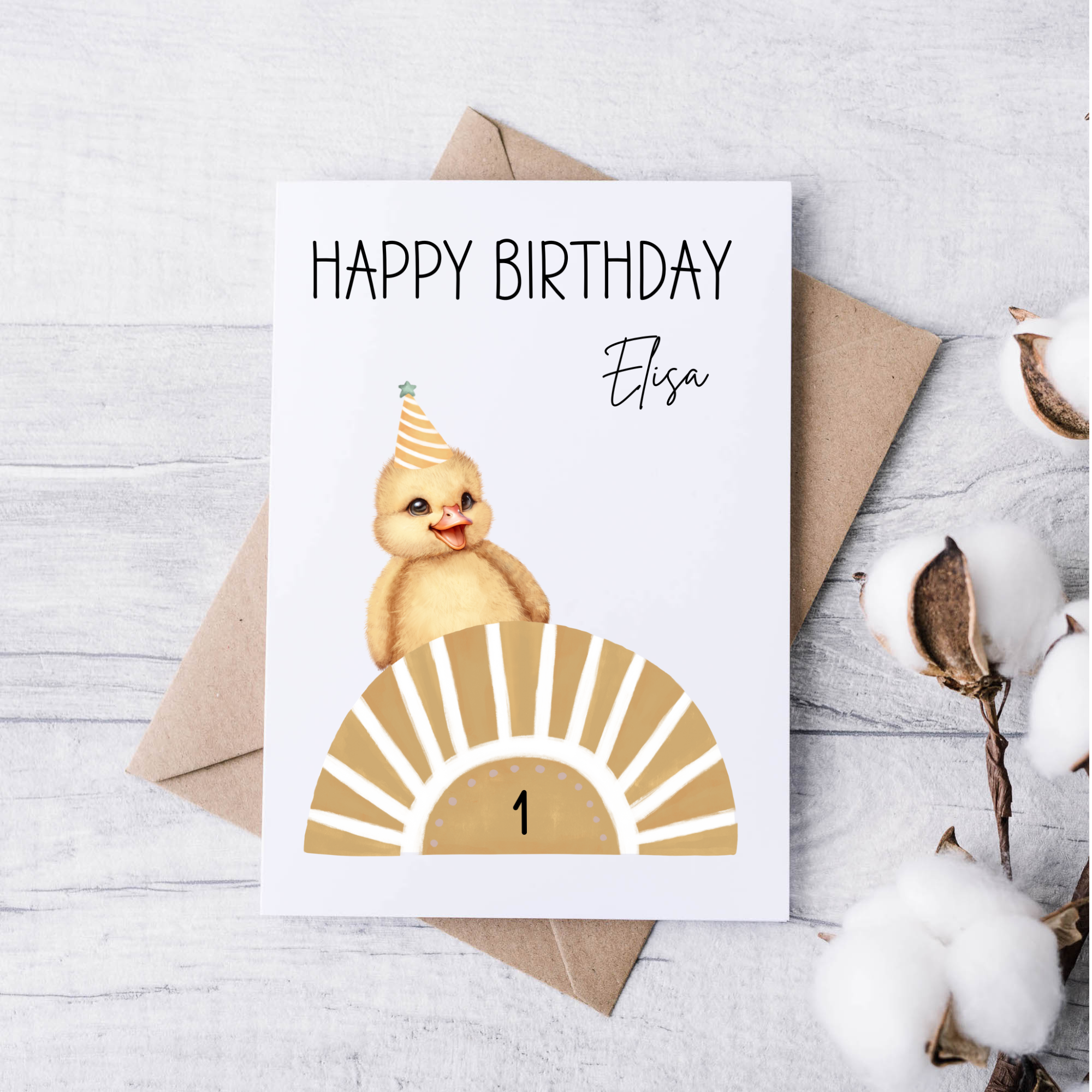 Geburtstagskarte Kind Sonne – personalisiert mit Name & Alter - Küken