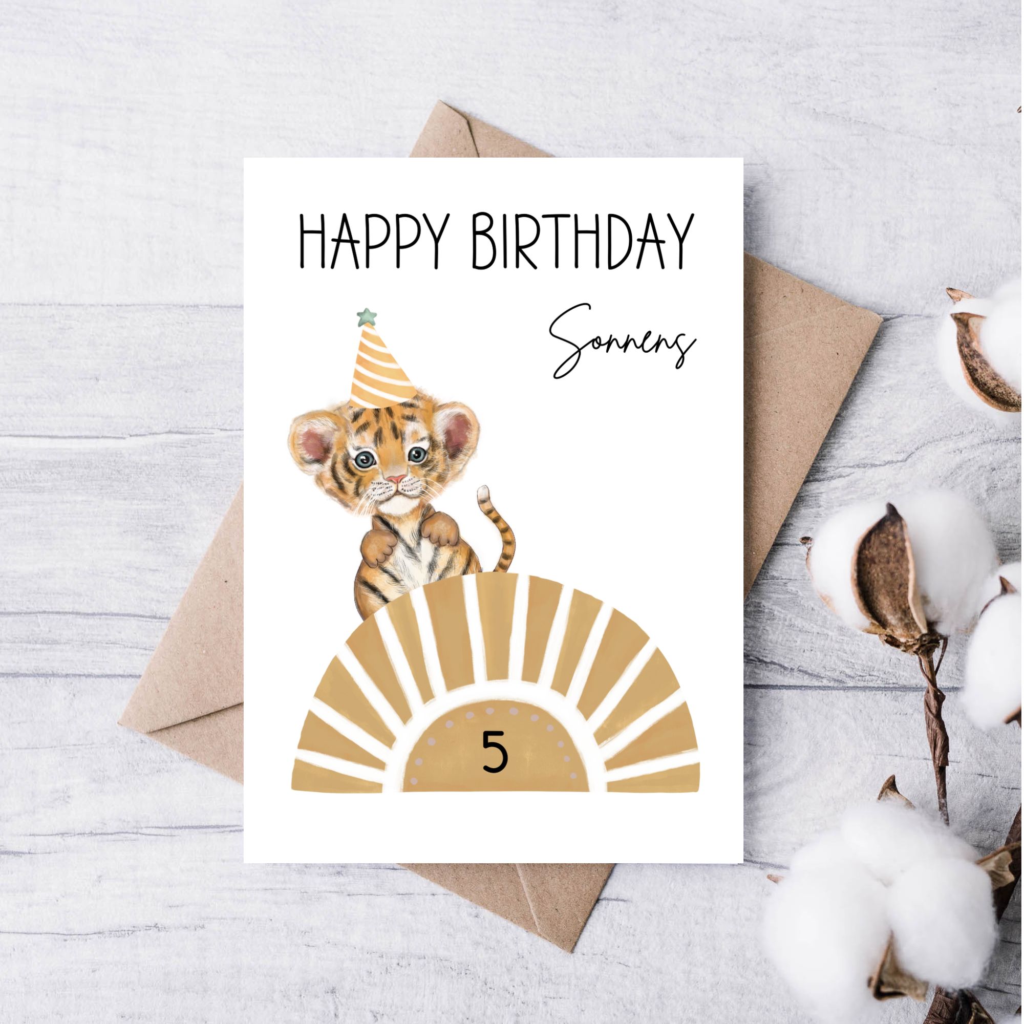 Geburtstagskarte Kind Sonne – personalisiert mit Name & Alter - Tiger