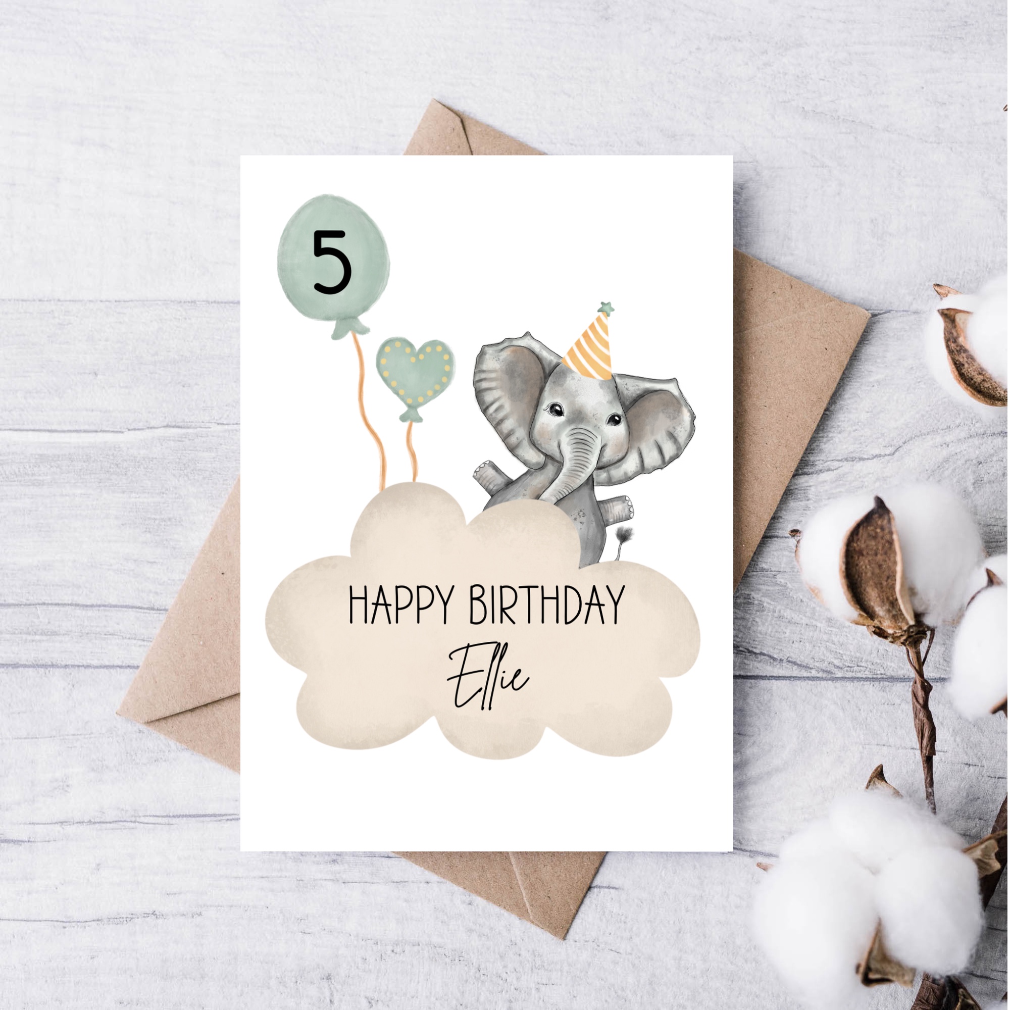 Geburtstagskarte Kind Wolke – personalisiert mit Name & Alter - Elefant