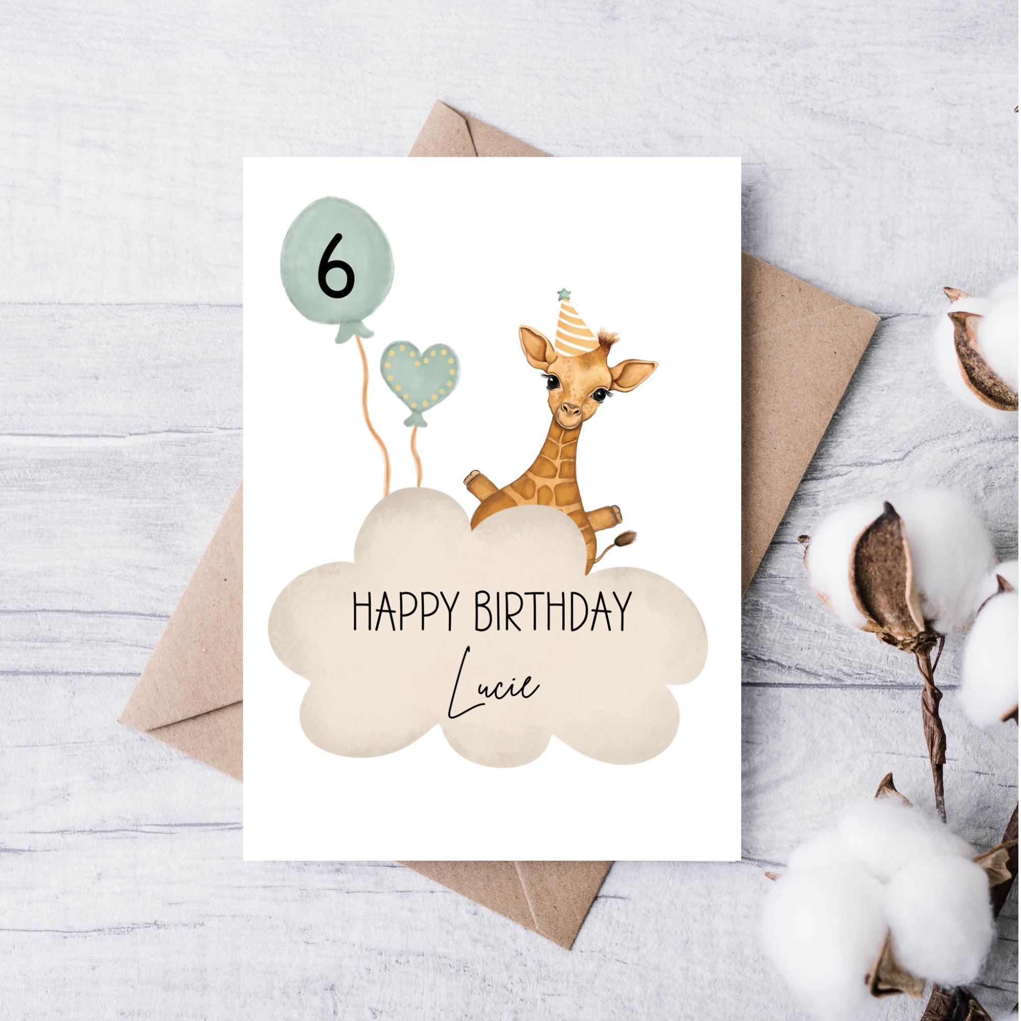Geburtstagskarte Kind Wolke – personalisiert mit Name & Alter - Giraffe