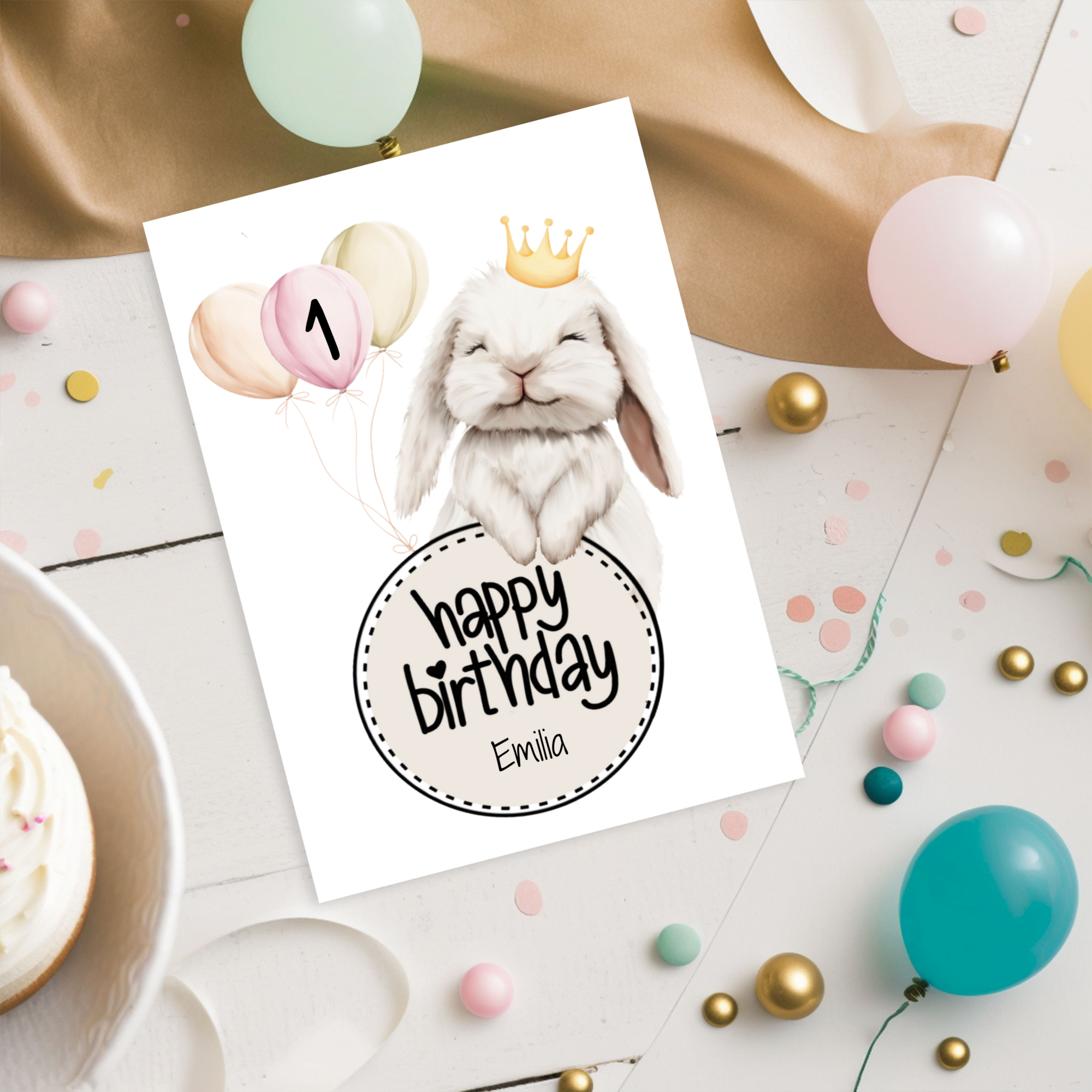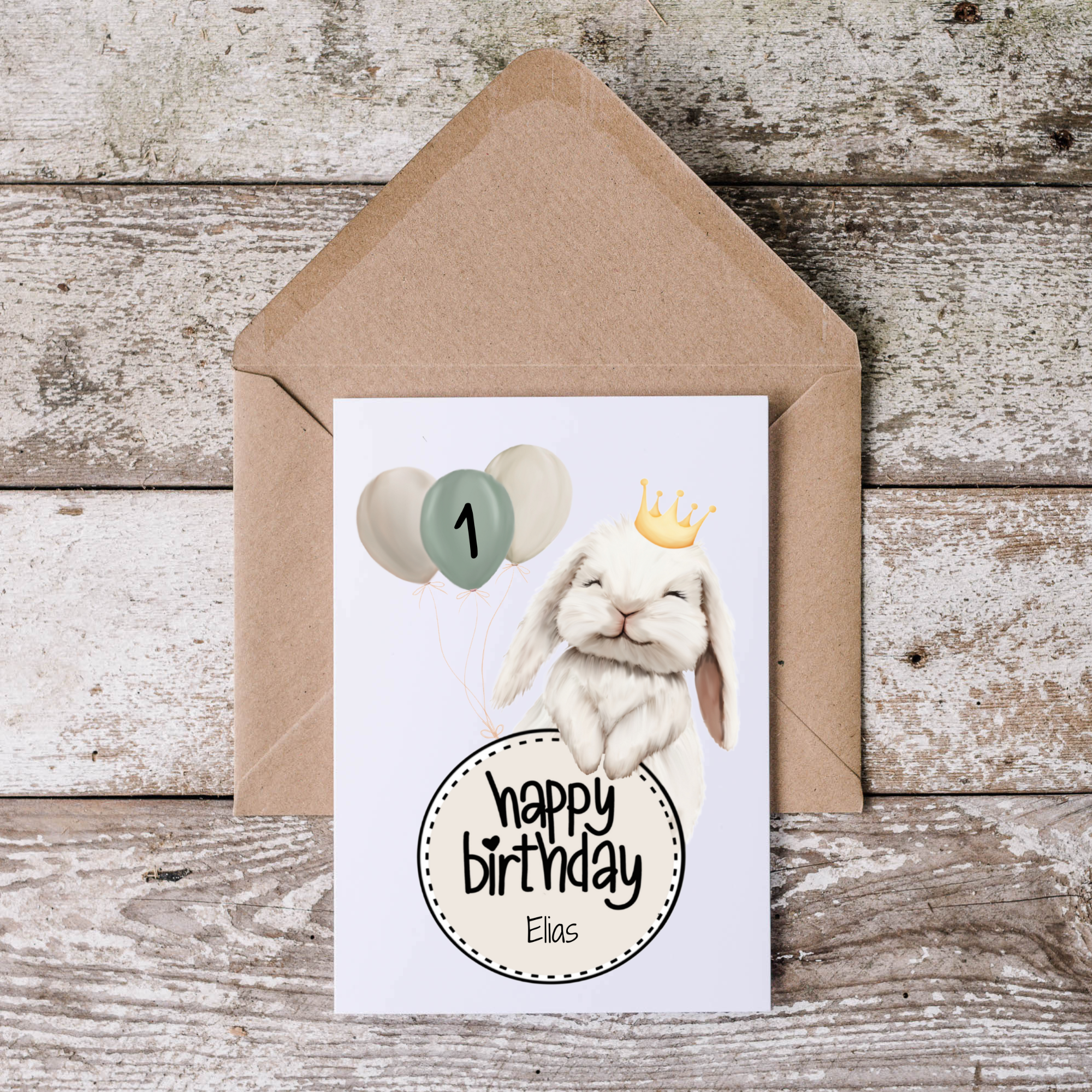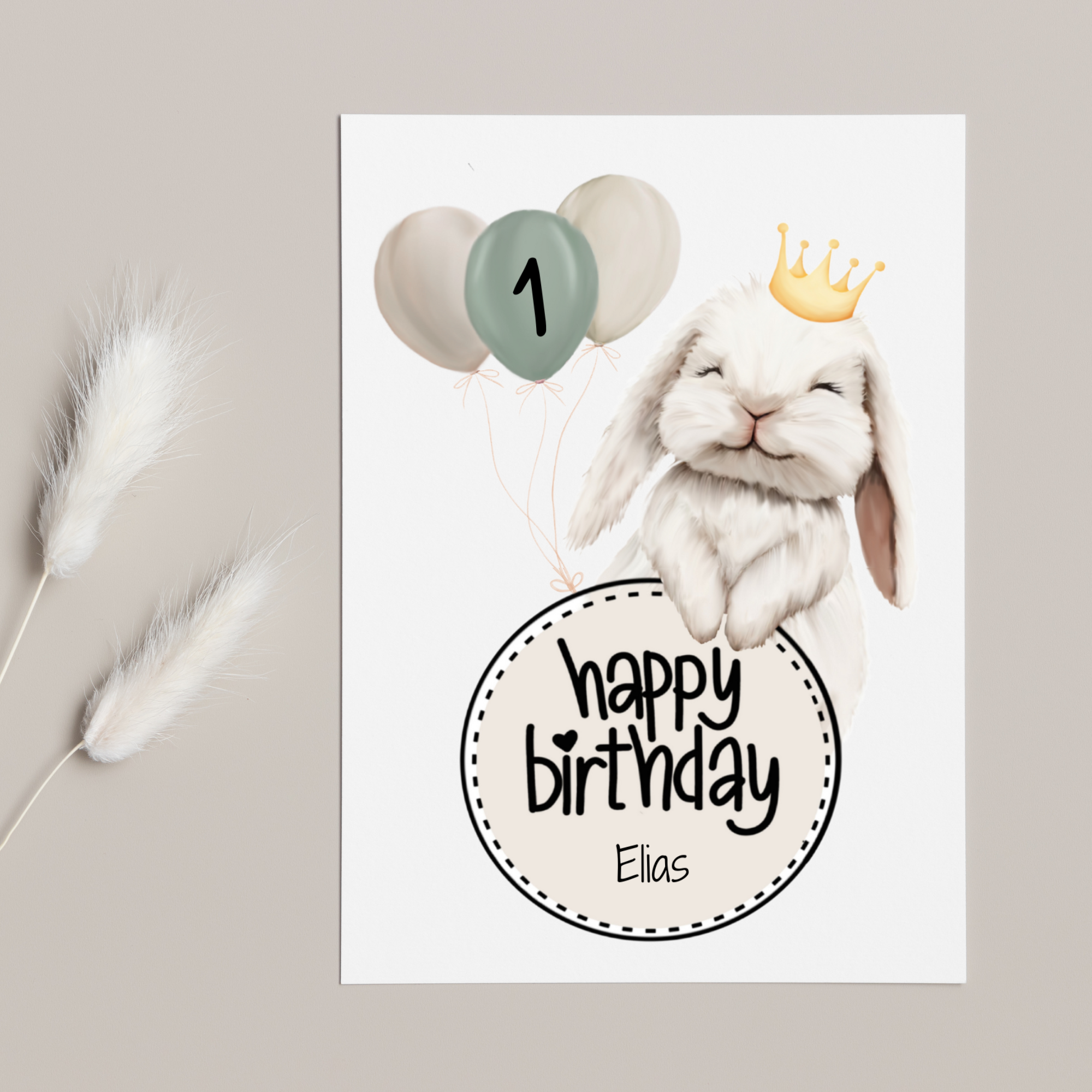 Geburtstagskarte Kind mit Hase im Skandi Stil - personalisiert mit Name & Alter
